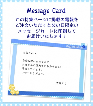 カタログギフトMade in Japan(06) with 日本のおいしい食べ物(橙)+ハート電報ロイヤルフラワーブルー 選べる台紙料金:7,920円 ニッポンが誇る“ものづくり”の逸品の数々と日本全国から厳選した食材や郷土料理を集めた2つのカタログを1枚のカードに収めました。こだわりのあるお父さまにも納得のカタログギフトです。 詳細を見る
