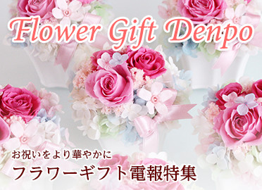 お祝いを受け取った瞬間からその後もずっと楽しめるアートフラワーのギフト電報です。